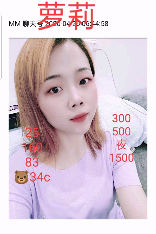 我也是来出差别人介绍认识的,跟她聊了一两天,看着人也行,就去体验了一把,感觉棒极。水又多。给大家推荐一下。