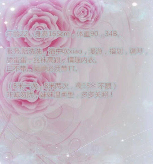 不限 无套 口爆 鸳鸯浴 艳舞 按摩 波推 指滑 臀推 毒龙 舌吻 环游 吹箫 六九 深喉 颜射 丝袜制服